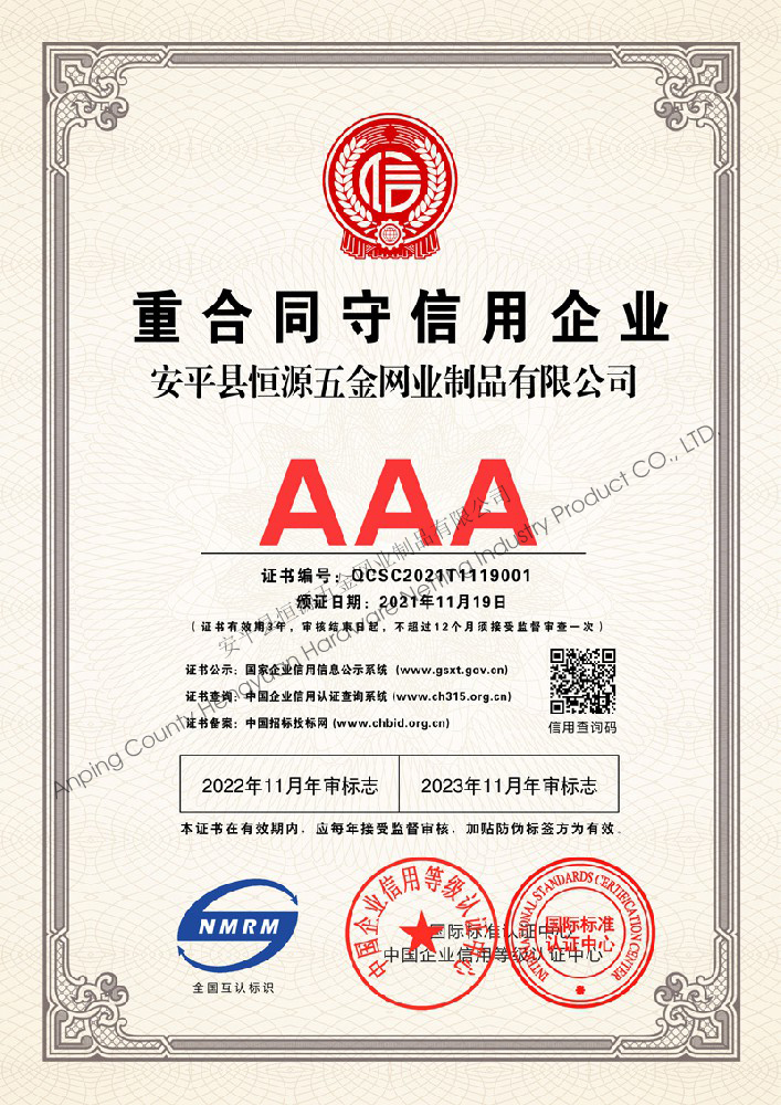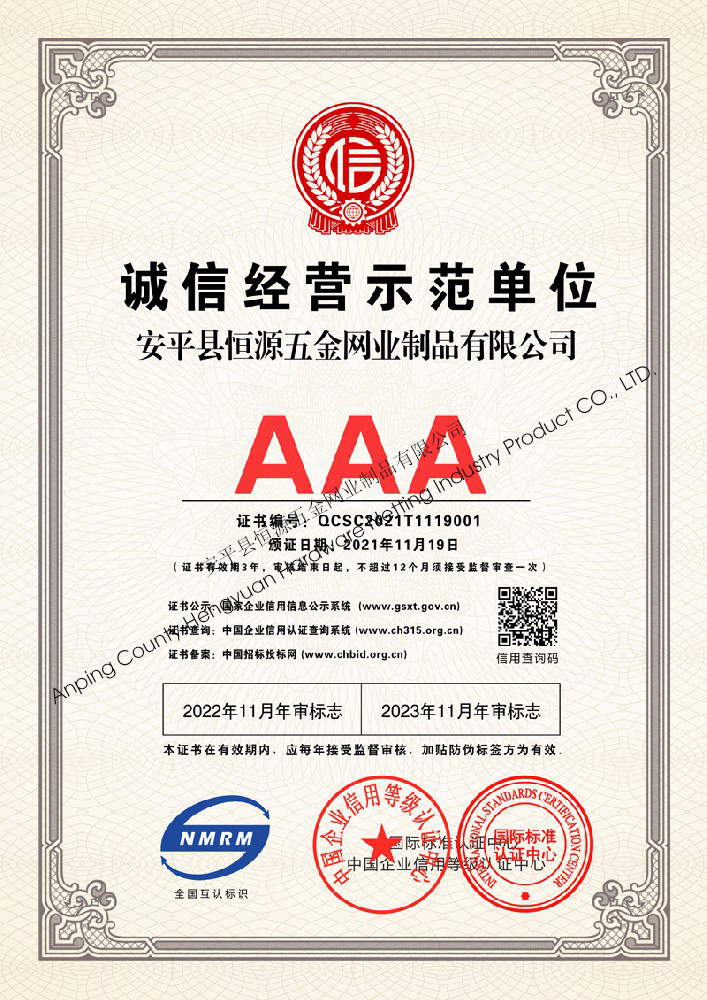多年來,安平縣恒源五金網(wǎng)業(yè)制品有限公司堅(jiān)持“科技興企、質(zhì)量立業(yè)”的經(jīng)營(yíng)理念和“誠(chéng)心為本、客戶至上”的合作宗旨,優(yōu)化生產(chǎn)工藝,打造優(yōu)質(zhì)產(chǎn)品,提供完善的服務(wù),受到國(guó)內(nèi)外客戶的一致好評(píng),產(chǎn)品行銷全國(guó)各地,并出口美國(guó)、德國(guó)、韓國(guó)、日本、臺(tái)灣等國(guó)家和地區(qū)。