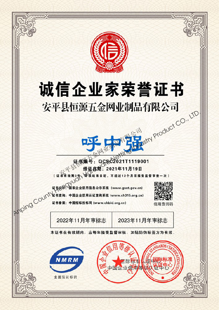 安平縣恒源五金網(wǎng)業(yè)制品有限公司,位于“絲網(wǎng)之鄉(xiāng)” 河北省安平縣,其前身為安平縣礦篩網(wǎng)廠,成立于2006年,注冊(cè)資金300萬元,是建廠時(shí)間較早、生產(chǎn)銷量較大的礦篩網(wǎng)骨干企業(yè)。